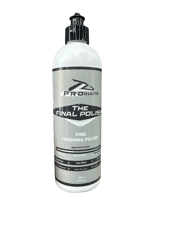 The Final Polish (TFP) es un pulidor de acabado a base de agua que fue diseñado por un detallista para detallistas. TFP es la formulación abrasiva más fina en la línea de productos TLD. Fue desarrollado como un paso de acabado en el proceso de pulido de pintura. Su objetivo principal es eliminar la opacidad, los hologramas o las micromarcas que pueden haberse introducido durante los pasos de pulido más agresivos o el mantenimiento deficiente de la capa transparente. También se puede utilizar para mejorar la pintura y extraer el brillo oculto de la capa transparente. Este producto sobresaldrá en situaciones donde se encuentren capas transparentes suaves o acabados delicados. Final Polish fue diseñado con un enfoque puro para mantener la fórmula lo más ligera posible, lo que a su vez proporciona una alta resistencia a las manchas de caucho y plástico. Esto significa que la TFP es delgada y liviana por diseño. La agresión también se puede personalizar en función de la selección de almohadillas, ya que es compatible con todas las variaciones de almohadillas. También se puede utilizar con máquinas de doble acción, rotación forzada o rotativas. TFP será una gran adición a su arsenal de pulido si lo que busca es el mejor acabado posible. Si The Last Cut o The Last Cut + carecen de la capacidad de terminar debido a la agresión de la formulación, aquí es donde se utiliza The Final Polish. Esta fórmula SIN SILICONA NO contiene RELLENOS y es SEGURO PARA EL TALLER DE CARROCERÍA.
